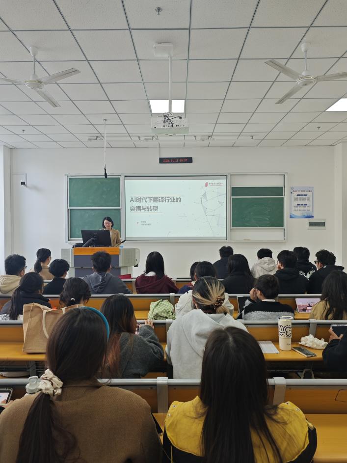 11月11日上午,线上娱乐城 商务英语专业开展“AI赋能与职业发展”主题活动,特邀译国译民集团洪细梅老师做“AI时代下翻译行业的突围和转型”专题讲座。商务英语专业全体学生参与此次活动,线上娱乐城 MTI研究生也共同参与学习。